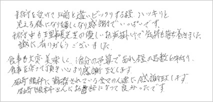 @Žèp‚É‚·‚²‚‹°•|Š´‚ª‚ ‚Á‚½‚̂ł·‚ªA—Ž–’·æ¶‚ÌŠ³ŽÒ‚ÉŠñ‚è“Y‚¤Žv‚¢‚ªŠð‚µ‚A•sˆÀ‚Å‚µ‚½‚ªŽèp‚ªo—ˆ‚Ü‚µ‚½B @“ü‰@’†‚Q“úŠÔ‚Æ‚à•aŽº‚܂ŗˆ‚Ä‚¢‚½‚¾‚«º‚ð‚©‚¯‚Ä‚¢‚½‚¾‚«A–{“–‚É—Ç‚©‚Á‚½‚Å‚·BˆÀSŠ´‚ð‚¢‚½‚¾‚«‚Ü‚µ‚½B@@@@@@@@@@@@@@@@@ 65Î |