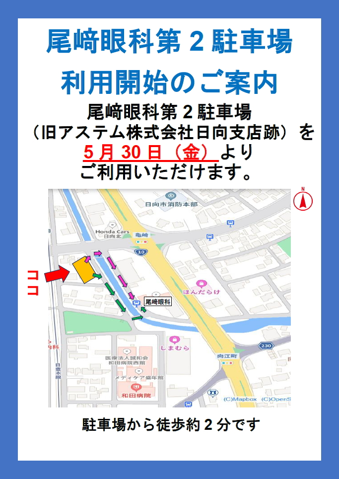 尾﨑眼科第2駐車場のお知らせ